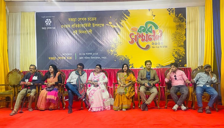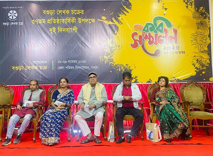কবি সম্মেলন শেষ করলো বগুড়া লেখক চক্র। যেখানে উঠে আসে সাহিত্যের অন্ধকার সময়ে কবি সাহিত্যিকদের করণীয় প্রসঙ্গ। যার শুরুটা করতে চান বগুড়াবাসী। সে লক্ষ্যে আগামী দিনের কর্মপরিকল্পনা জানালেন তাঁরা। বাংলাদেশের বিভিন্ন প্রান্তের দুই শতাধিক কবি-সাহিত্যিক নিয়ে এই সম্মেলন শুরু হয়েছিল বগুড়া জেলা পরিষদ মিলনায়তনে। বাংলাদেশের ঐতিহ্যবাহী সাহিত্য সংগঠন বগুড়া লেখক চক্রের আয়োজনে গত শুক্রবার বেলা ১০টায় উদ্বোধনী পর্ব শুরু হয়ে রাত ৮টায় ৮ম পর্বে দল অন্যরকম-এর পরিবেশনা দিয়ে প্রথম দিনের কার্যক্রম শেষ।