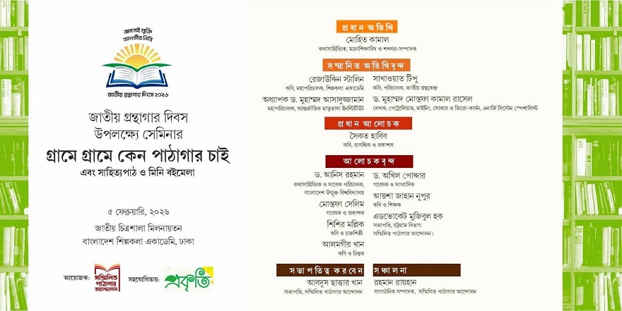 'জাতীয় গ্রন্থাগার দিবস' আজ। 'সম্মিলিত পাঠাগার আন্দোলন'-এর পক্ষ থেকে আয়োজিত বিশেষ সেমিনারে আমন্ত্রণ জানাচ্ছি বন্ধুদের।