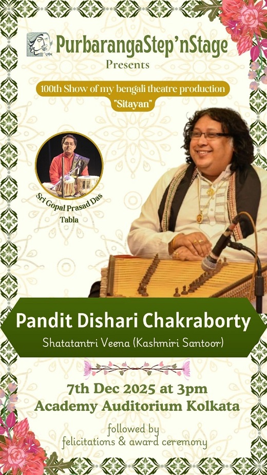 ভারতীয় শাস্ত্রীয় সঙ্গীতের এক বিস্ময়কর জগৎ আছে, যেখানে স্বর আর নাদ মিলে তৈরি করে এক সুললিত অনন্ততা। সেই অনন্ততার ধারাবাহিকতাকে আধুনিক সময়ে এগিয়ে নিয়ে যাচ্ছেন যে সব শিল্পী, তাঁদের মধ্যে উদীয়মান সন্তুরবাদক দিশারী চক্রবর্তী বিশেষভাবে উল্লেখযোগ্য। সন্তুর—নামটি উচ্চারণ করলেই কাশ্মীরের সমতল, তুষারঝরা পাহাড় আর শ্যামল স্রোতের মতো এক নির্মল সাউন্ডস্কেপ মনে ভেসে ওঠে। সেই নির্মল সুরের ভিতর দিয়ে দিশারী নিজস্ব স্বাক্ষর রেখে গেছেন—যেখানে মিশে আছে তাঁর গভীর অনুশীলন, সহৃদয়তা এবং সংগীতবোধের পরিপক্বতা। সন্তুর এমন একটি বাদ্যযন্ত্র যার নরম অথচ দীর্ঘস্থায়ী নাদকণার মধ্যে থাকে বিরাট স্পেস, অসংখ্য সূক্ষ্মতা, আর গভীর অনুভূতির প্রতিফলন। এই বাদ্যযন্ত্রকে বাজানো শুধু কারিগরি দক্ষতার দাবি করে না—প্রয়োজন হয় এক বিশাল অন্তর্গত নীরবতা। দিশারী চক্রবর্তীর বাজনায় এই নীরবতাই প্রথমে ধরা দেয়। তাঁর আলাপে মন্থরতা নেই, আবার তাড়াহুড়োও নেই। বরং আছে মিতালির মতো একটি ভরসা—যে রাগের অনুভব তিনি ফুটিয়ে তুলছেন, তা ধীরে ধীরে শ্রোতার হৃদয়ে স্থাপিত হবে।